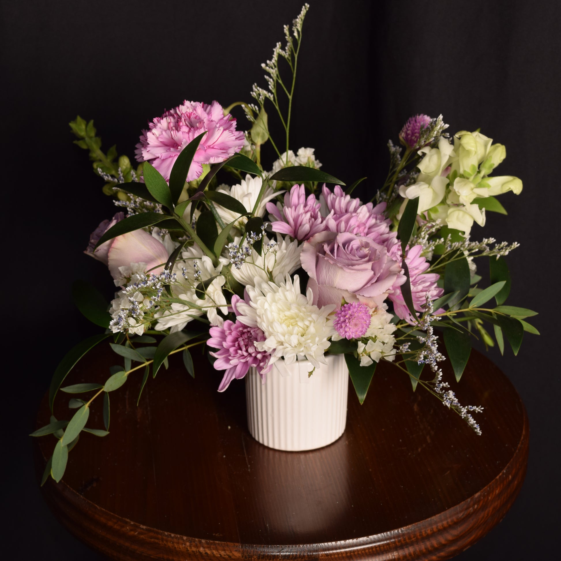 Our Table Arrangements are perfect for display in your own home or as a gift for someone else. They are a popular choice for occasions like birthdays, anniversaries, 'new baby', etc. Designed in a low ceramic vessel, they act as the ideal centrepiece. They include fresh seasonal blooms and lush greenery.